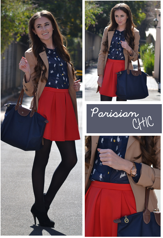 Cotton On blouse | Mr Price skirt | Forever New trench | Mr Price booties | Longchamps bag