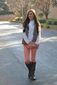 You look so lovely!! I love the peach jeans paired with the vest, and the blouse is absolutely beautiful too! ๐ Hope you’re having an amazing week so far Leanne <3 Xx