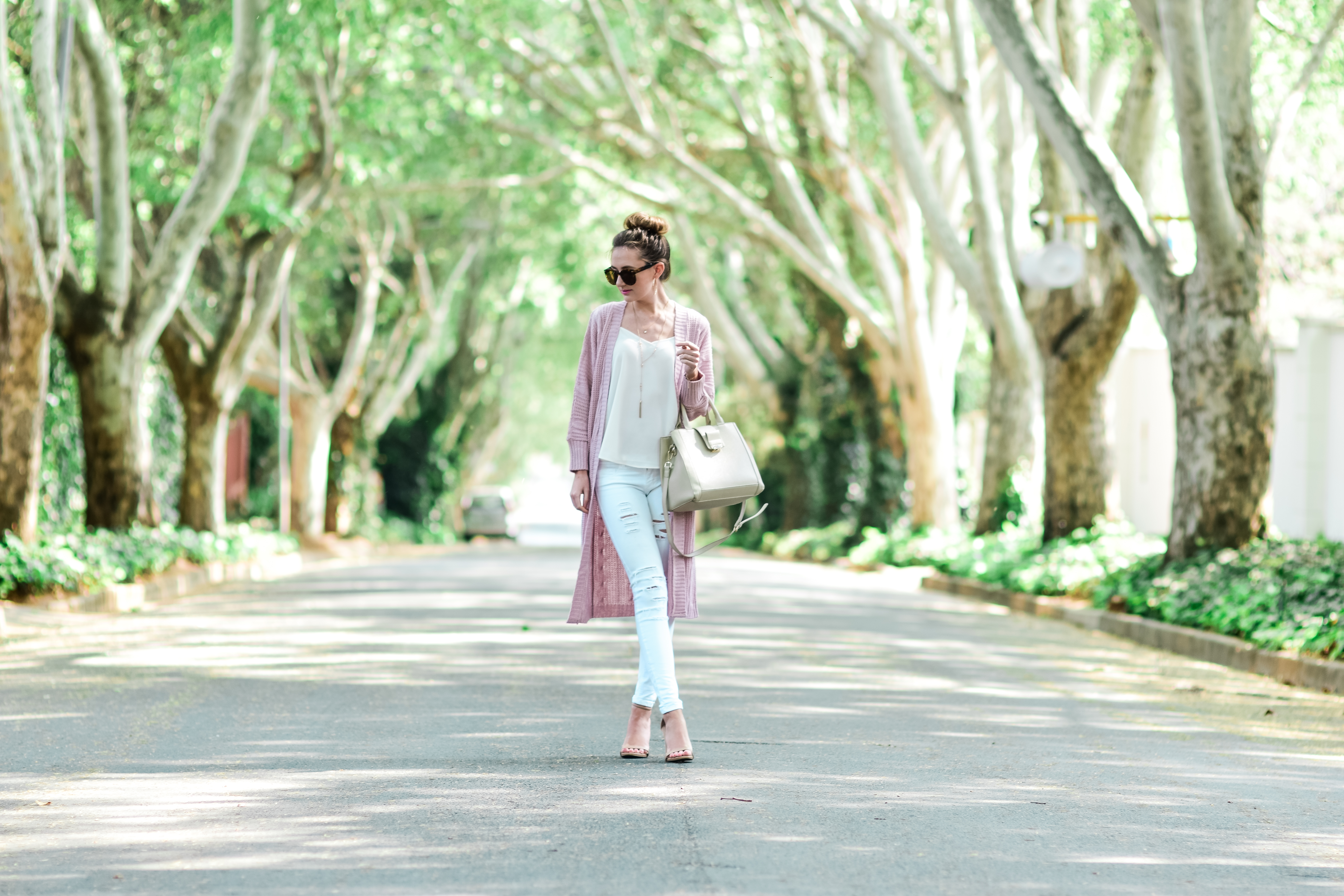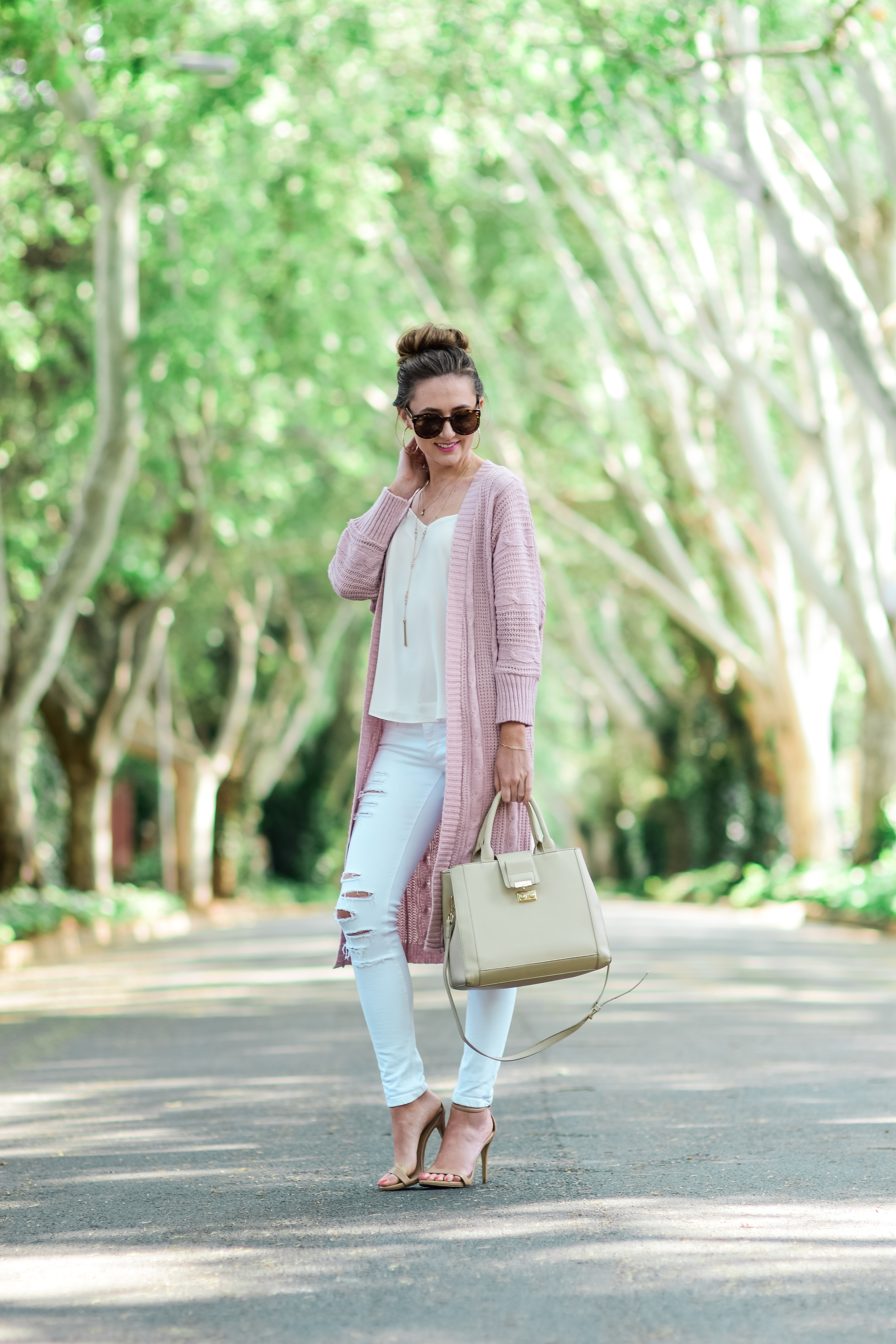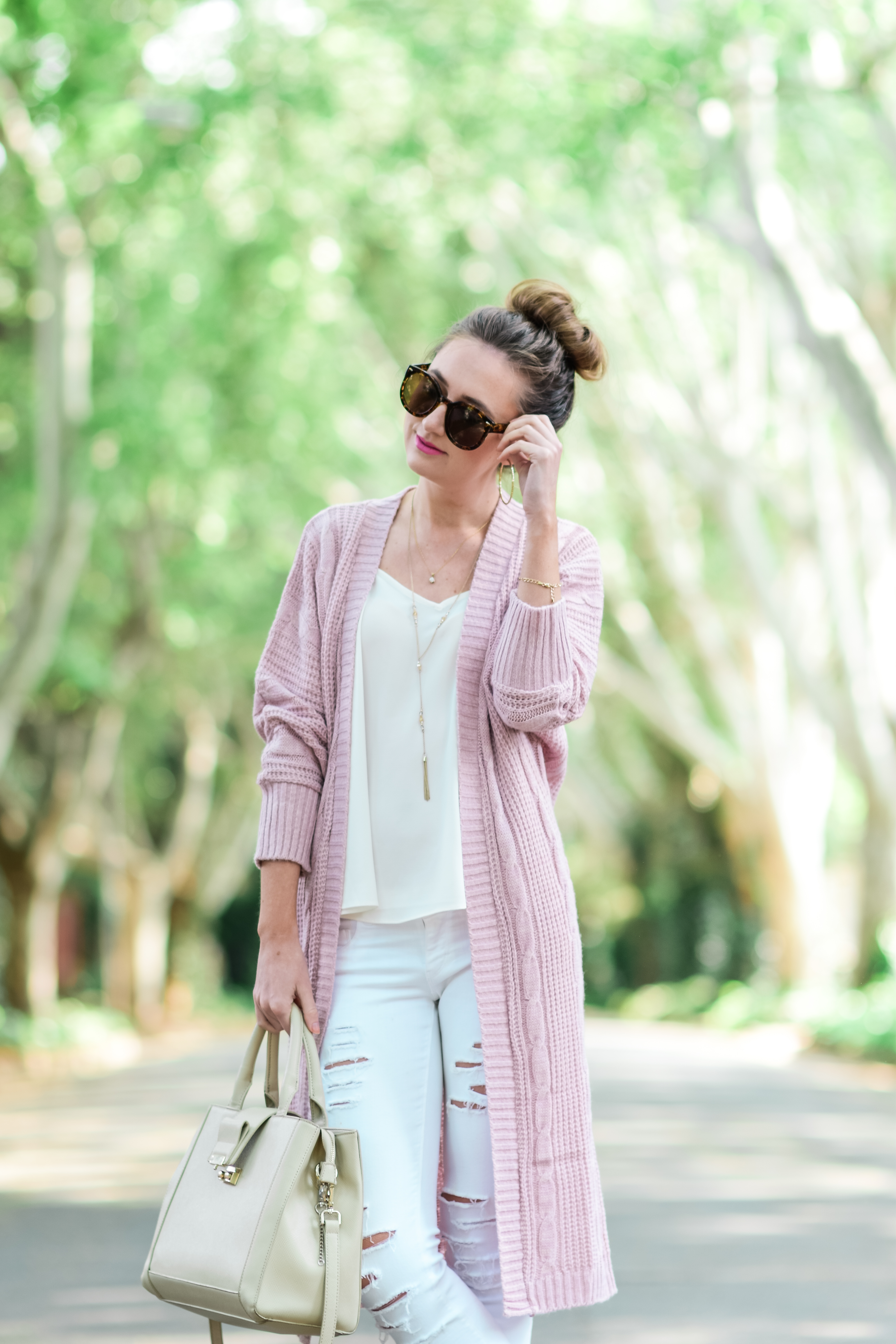 Maxi Cardigan (similar available) | | | Sissy Boy white distressed denim (similar available) | Zara bag (love this version) | |