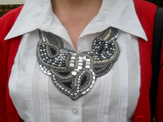 Classy, chic, and cute! I especially love both the skirt and the pumps. This is a preppy look… and a very lovely one at that. The blazer and blouse are both charming, and that necklace is a real statement maker. You look gorgeous, Leanne!