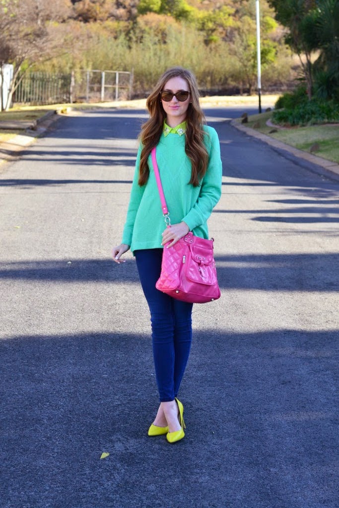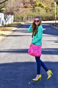 I’m a huge fan of colour in winter. While I really love neutral tones it’s fun to shake thinks up with bold pops of colour whether by wearing a bright lip, neon shoes or a whole bunch of colour thrown together.